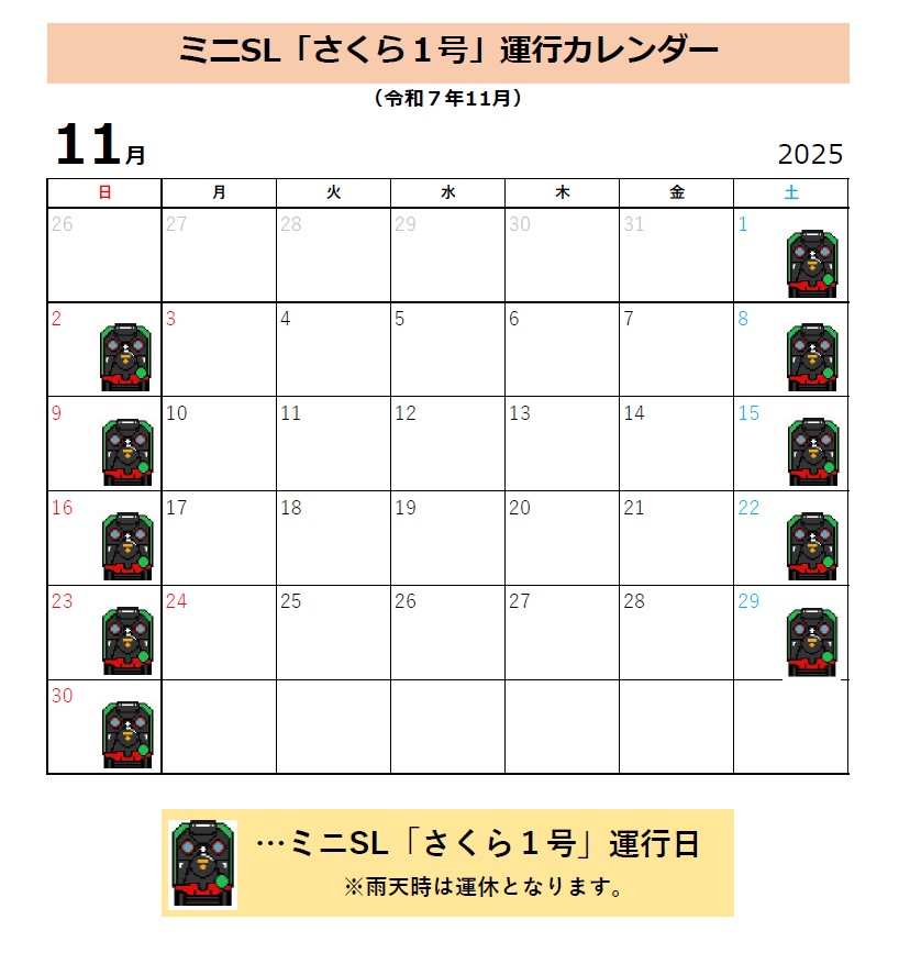 ミニSL「さくら号」運行情報