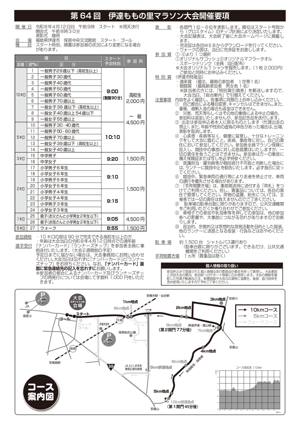 【種 目】 10㎞・5㎞・3㎞・2㎞・1㎞親子・5㎞ウォーク